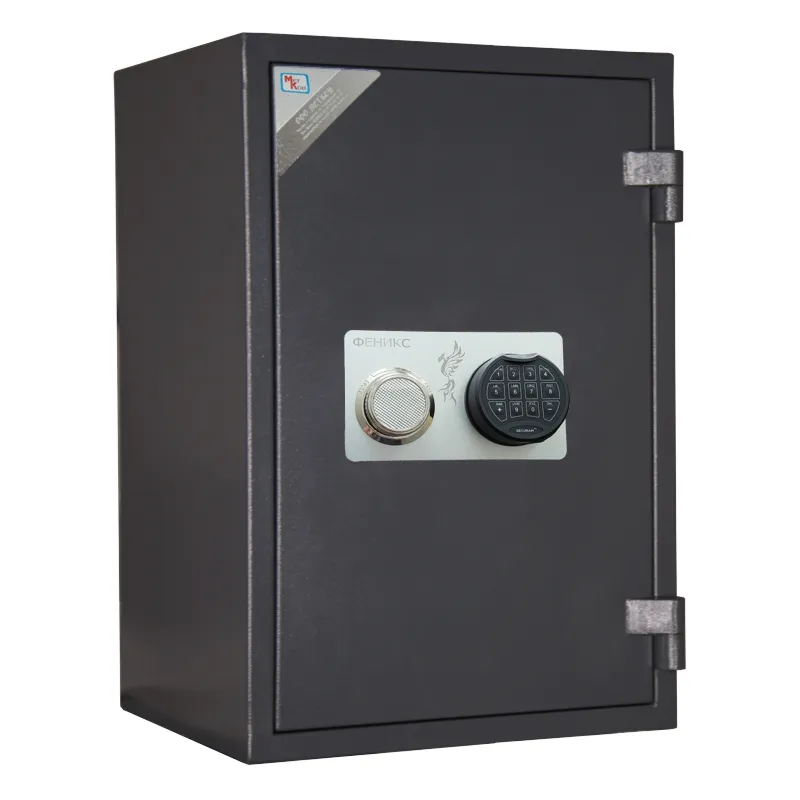Сейф односекционный Феникс-67ЭБ предназначен для сохранности документов и ценностей при пожаре и взломе. Сейф сертифицирован по ГОСТ Р 50862-2017 класс устойчивости к взлому-I (первый), ГОСТ Р 57384-2017 класс огнестойкости 60Б. Сейф односекционный, оснащен одной съемной полкой и трейзером . В двери установлен электронно-биометрический SecuRam класса “В”