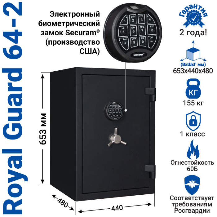Взломо- и огне- стойкий сейф с премиальной отделкой Royal Guard 64 Primary